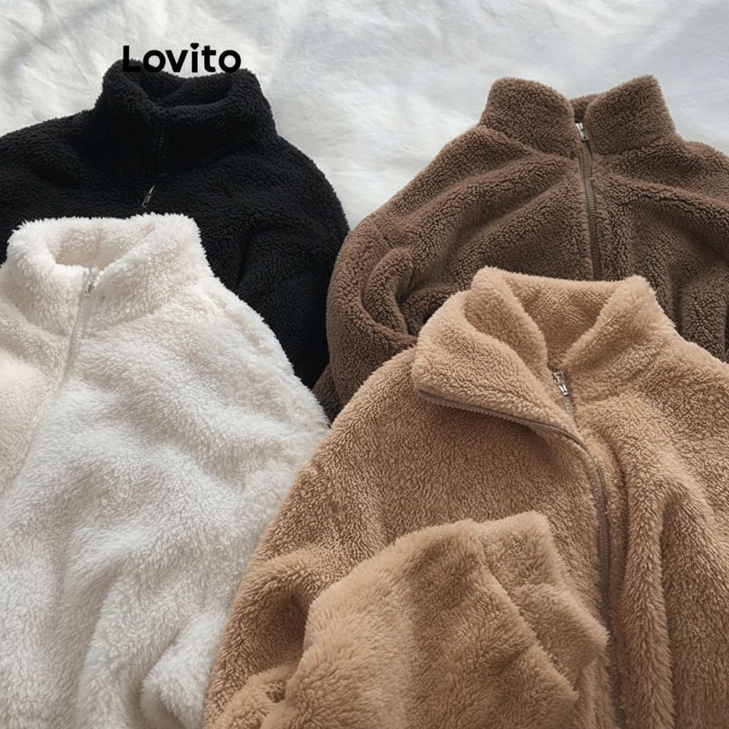 Descubra o casaco perfeito para o seu dia a dia com a coleção Lovito! Este modelo básico, com zíper e textura delicada, oferece um visual casual e elegante, ideal para diversas ocasiões. Feito em poliéster de alta qualidade, garante conforto e durabilidade.