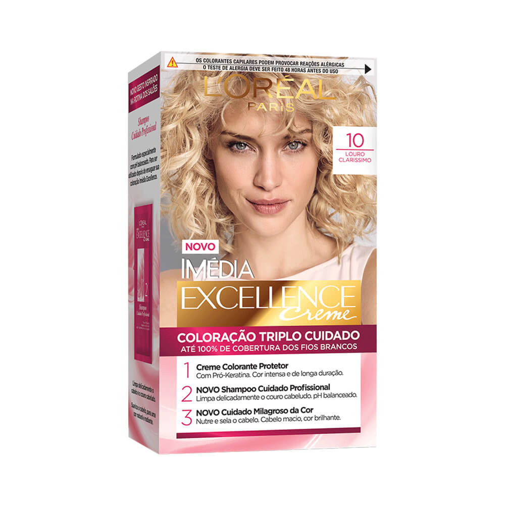 A Coloração Imédia Excellence 10 Louro Claríssimo da L’Oréal Paris oferece uma cobertura total e duradoura, transformando seus cabelos com um tom radiante e intenso. Ideal para cobrir fios brancos e proporcionar um visual impecável.
