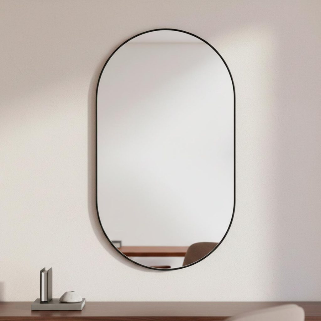 Espelho Orgânico Pilula 44x64cm – Moldura em Couro Ecológico para Banheiro Sala estilo Pinterest