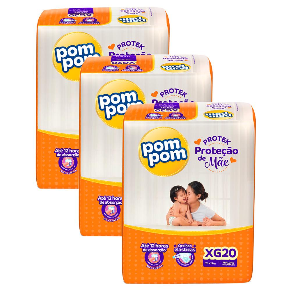 - 3 Pacotes de Fraldas Pom Pom Protek Proteção de Mãe Jumbo XG