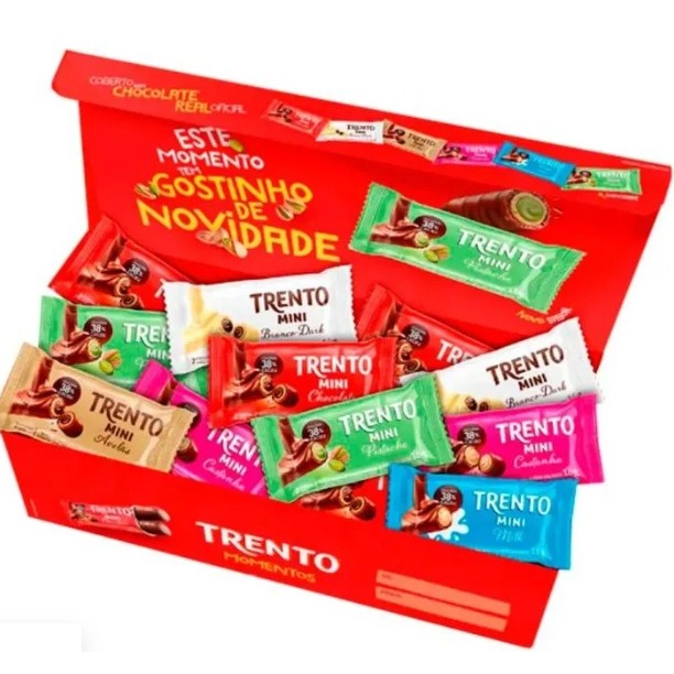 - Variedade Exclusiva: Cada caixa é uma experiência única, com uma seleção cuidadosa dos melhores chocolates Trento.