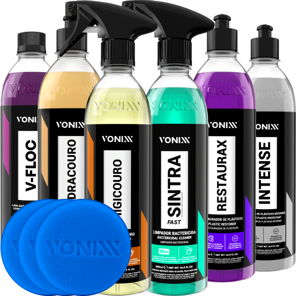 | Modelo | Kit Lavagem Revitalização Automotiva Sintra Restaurax V-Floc Vonixx + 3 Aplicador de Espuma |
