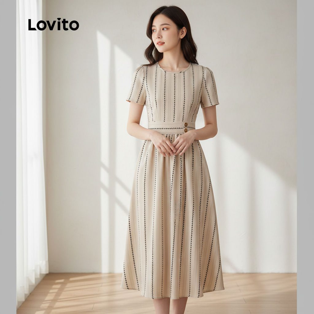 Este vestido casual da Lovito é a escolha ideal para quem busca estilo e conforto. Com estampa listrada, ele combina com diversas ocasiões. O modelo é de modelagem ampla, proporcionando liberdade de movimento e um visual moderno.