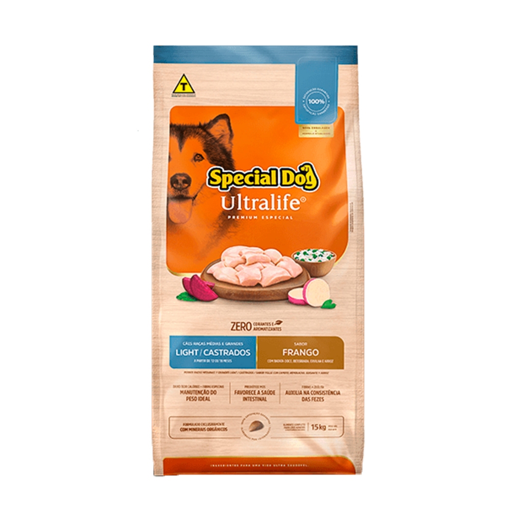 | Modelo | Ração Cães Special dog Ultralife Light Raças Médias/Grande Frango e Arroz ? 15kg |